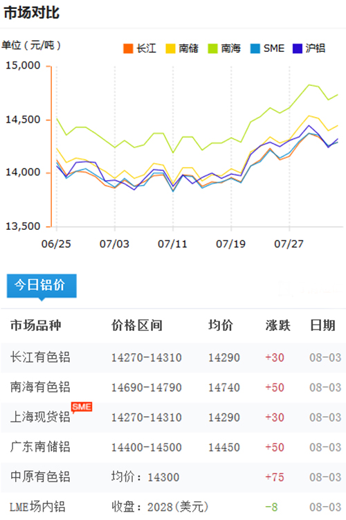 鋁錠價(jià)格今日鋁價(jià)2018-8-3