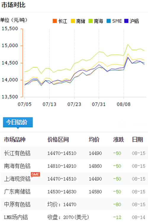鋁錠價(jià)格今日鋁價(jià)2018-8-15