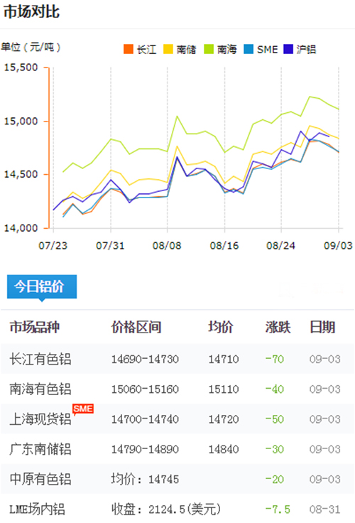 鋁錠價(jià)格今日鋁價(jià)2018-9-3