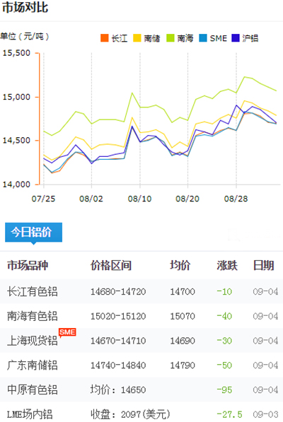鋁錠價格今日鋁價2018-9-4