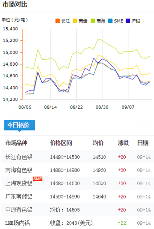 鋁錠價(jià)格今日鋁價(jià)2018-9-14