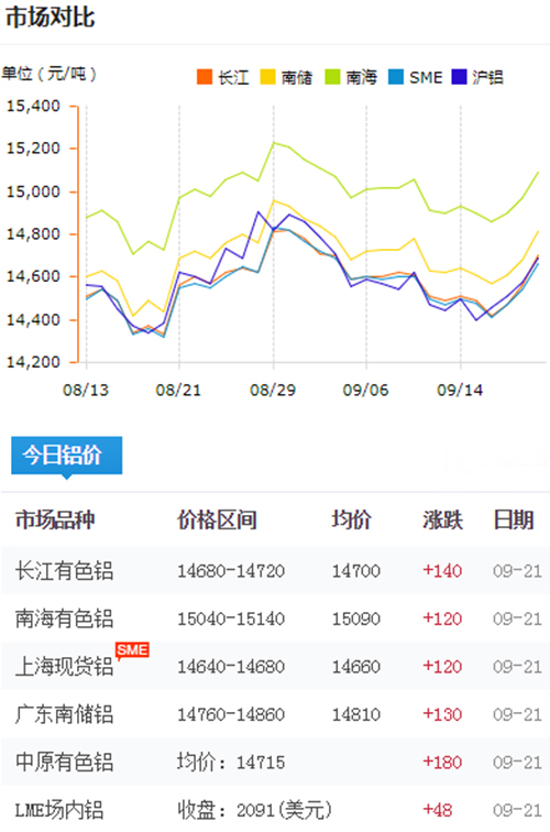 鋁錠價(jià)格今日鋁價(jià)2018-9-21