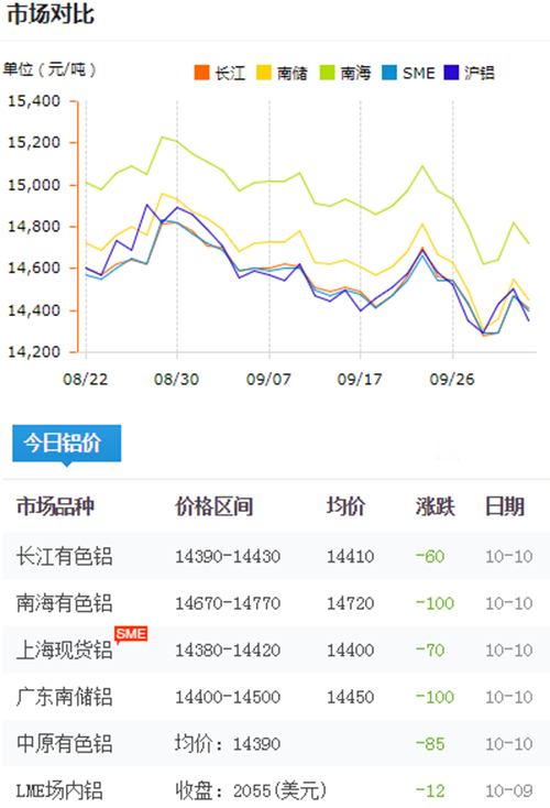 鋁錠價(jià)格今日鋁價(jià)2018-10-10