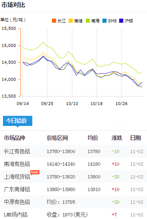 鋁錠價(jià)格今日鋁價(jià)2018-11-02