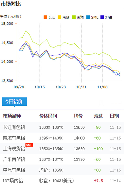 鋁錠價(jià)格今日鋁價(jià)2018-11-15