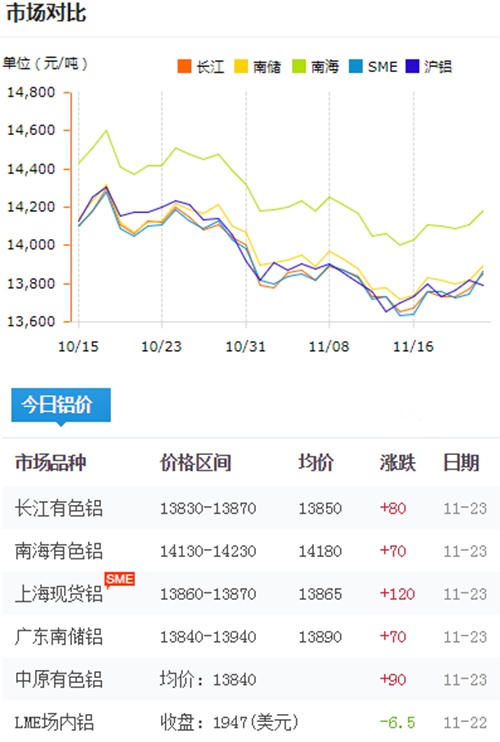 鋁錠價(jià)格今日鋁價(jià)2018-11-23