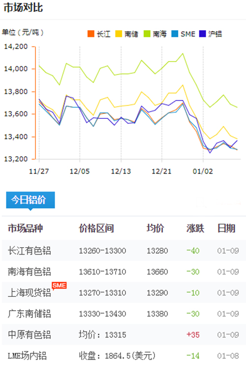 鋁錠價(jià)格今日鋁價(jià)2019-01-09