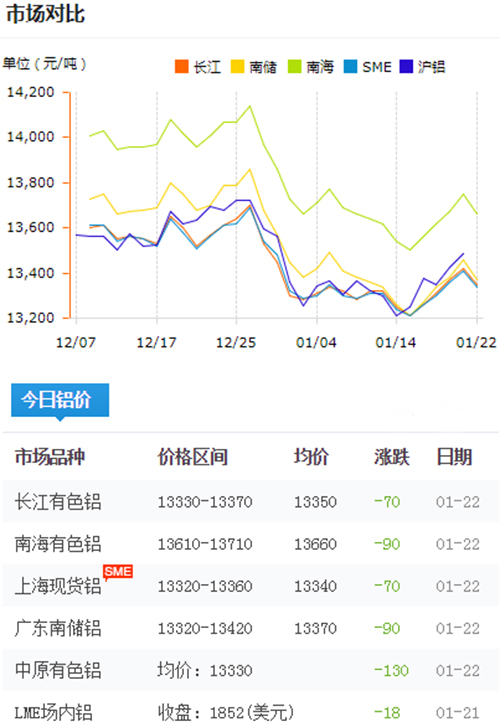 鋁錠價(jià)格今日鋁價(jià)2019-01-22