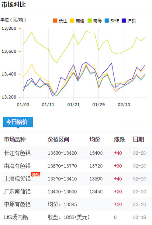 鋁錠價格今日鋁價2019-02-20