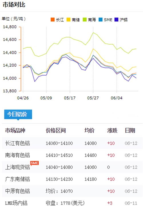 鋁錠價格今日鋁價2019-06-12