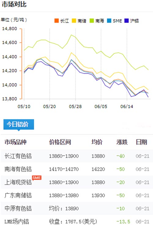 鋁錠價格今日鋁價2019-06-22