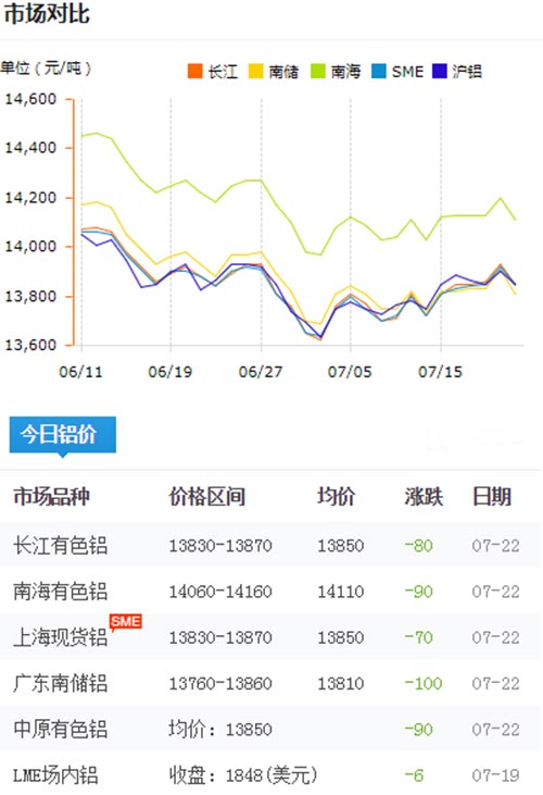 鋁錠價(jià)格今日鋁價(jià)2019-07-22