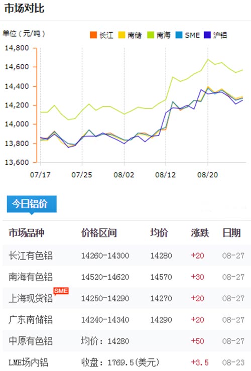 鋁錠價(jià)格今日鋁價(jià)2019-08-27