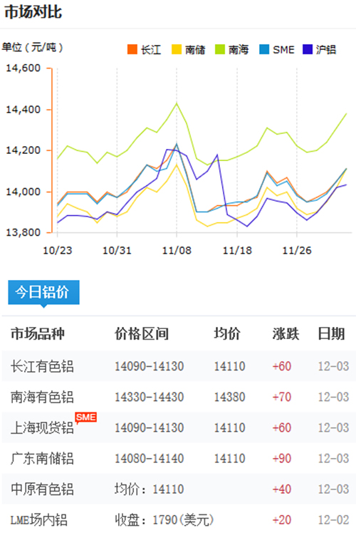 鋁錠價(jià)格今日鋁價(jià)2019-12-03