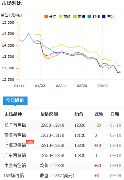 鋁錠價格今日鋁價2020-03-10