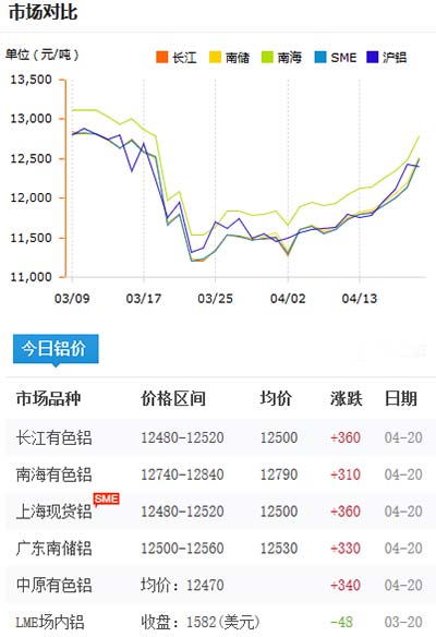 鋁錠價(jià)格今日鋁價(jià)2020-04-20