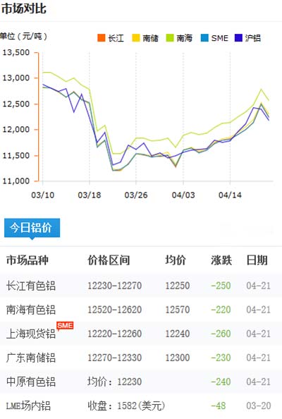 鋁錠價(jià)格今日鋁價(jià)2020-04-21
