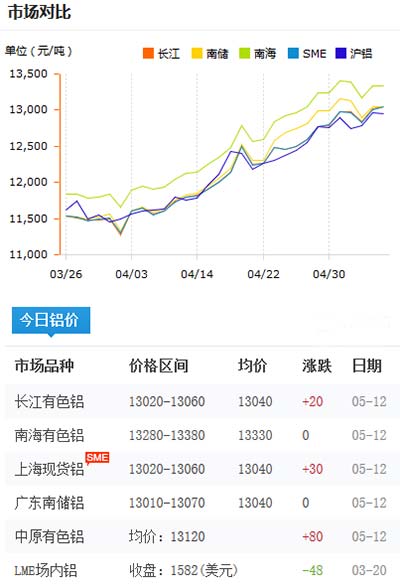 鋁錠價(jià)格今日鋁價(jià)2020-05-12