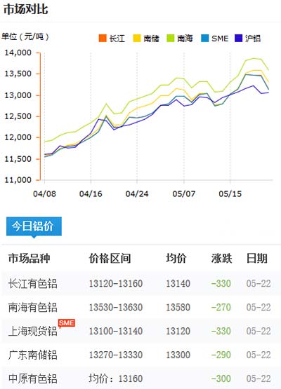 鋁錠價(jià)格今日鋁價(jià)2020-05-22