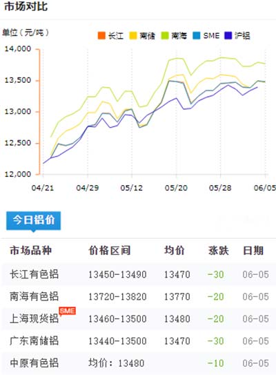 鋁錠價(jià)格今日鋁價(jià)2020-06-05