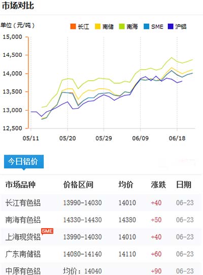 鋁錠價(jià)格今日鋁價(jià)2020-06-23