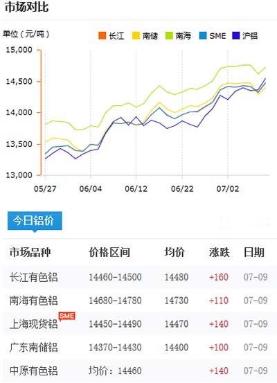 鋁錠價(jià)格今日鋁價(jià)2020-07-09