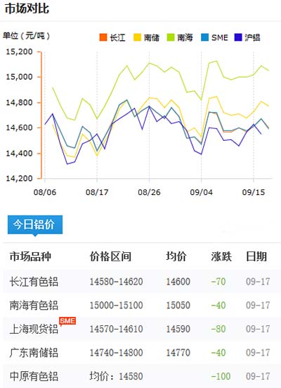 鋁錠價(jià)格今日鋁價(jià)2020-09-17