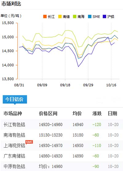 鋁錠價(jià)格今日鋁價(jià)2020-10-20