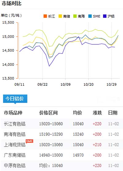 鋁錠價(jià)格今日鋁價(jià)2020-11-02