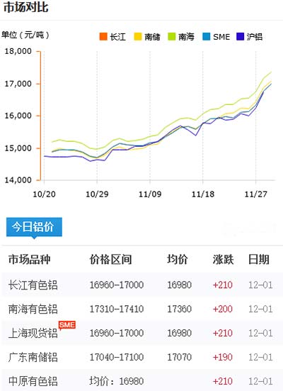 鋁錠價(jià)格今日鋁價(jià)2020-12-01