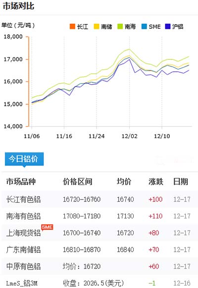 鋁錠價格今日鋁價2020-12-17