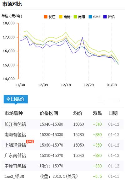 鋁錠價格今日鋁價2020-01-12