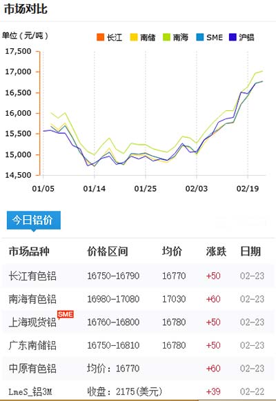 鋁錠價(jià)格今日鋁價(jià)2021-02-23