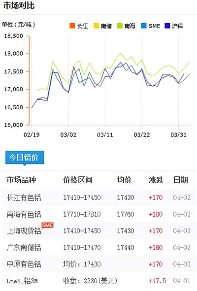 鋁錠價(jià)格今日鋁價(jià)2021-04-02