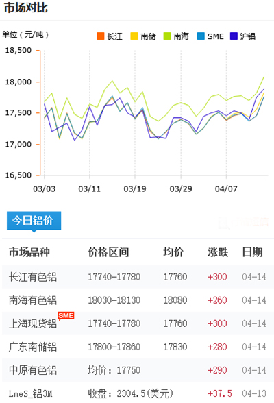 鋁錠價格今日鋁價2021-04-14