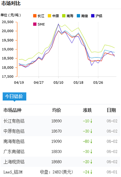 鋁錠價(jià)格今日鋁價(jià)2021-06-02