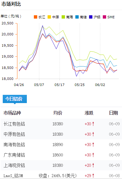 鋁錠價(jià)格今日鋁價(jià)2021-06-09