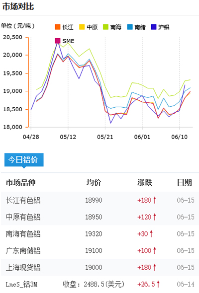 鋁錠價格今日鋁價2021-06-15