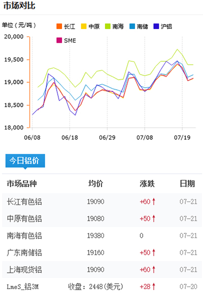 鋁錠價(jià)格今日鋁價(jià)2021-07-21