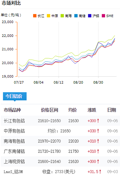 鋁錠價(jià)格今日鋁價(jià)2021-09-06