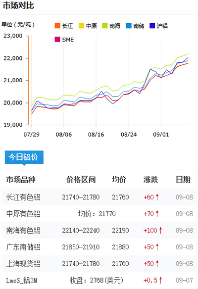 鋁錠價(jià)格今日鋁價(jià)2021-09-08