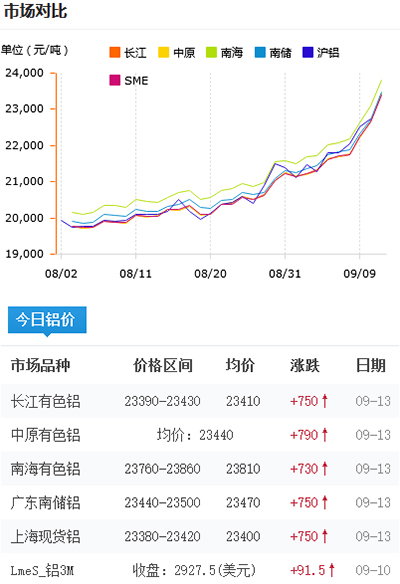 鋁錠價格今日鋁價2021-09-13