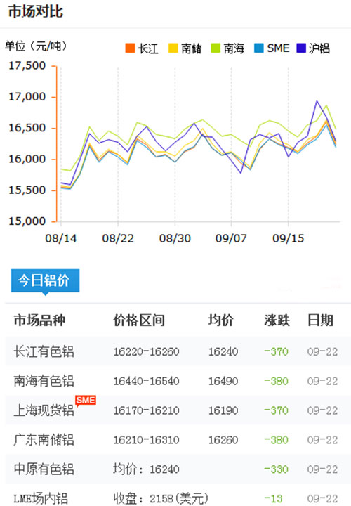 鋁錠價(jià)格今日鋁價(jià)2017-9-23