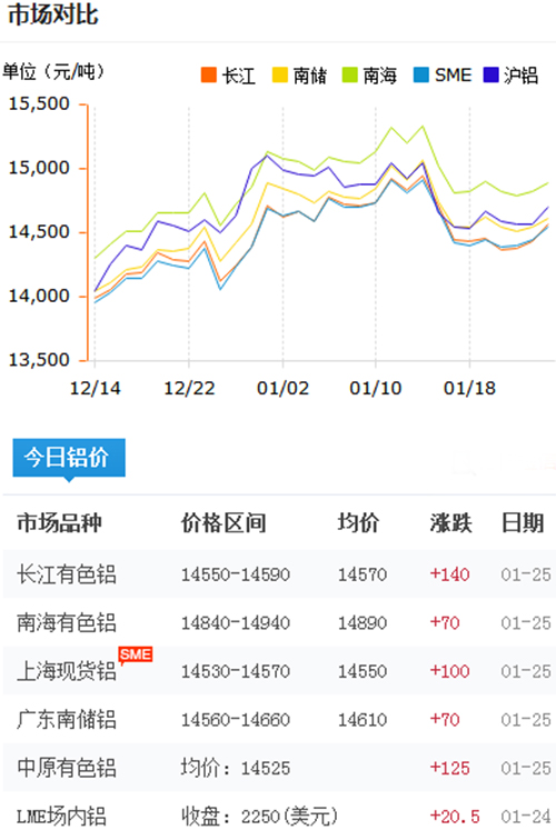 鋁錠價(jià)格今日鋁價(jià)2018-1-25