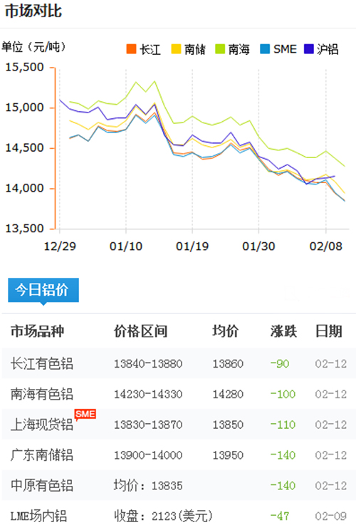 鋁錠價(jià)格今日鋁價(jià)2018-2-12