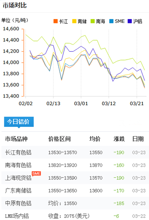 鋁錠價格今日鋁價2018-3-23