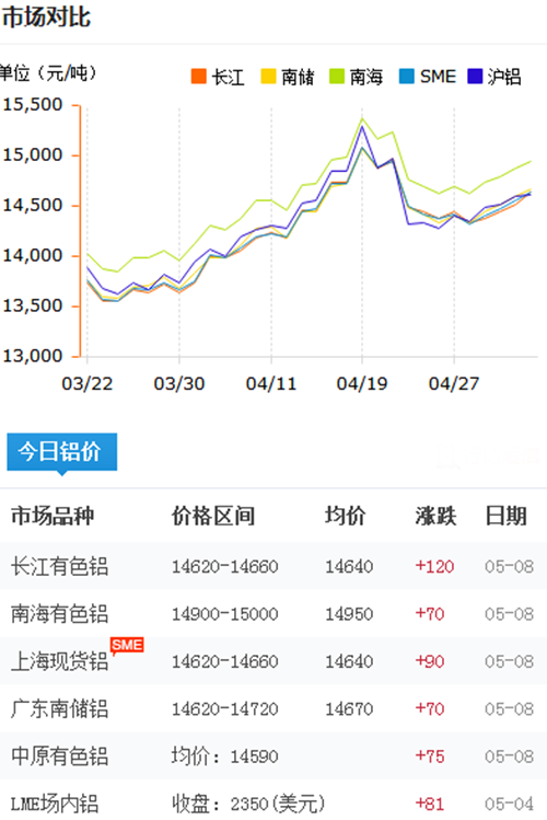 鋁錠價(jià)格今日鋁價(jià)2018-5-8