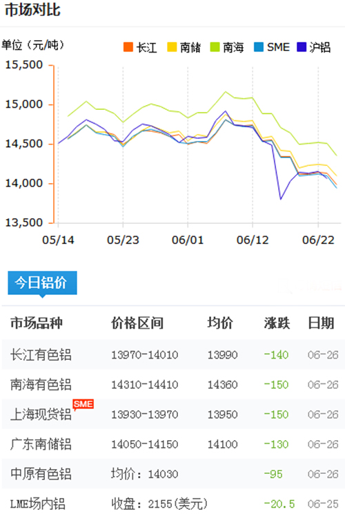 鋁錠價格今日鋁價2018-6-26